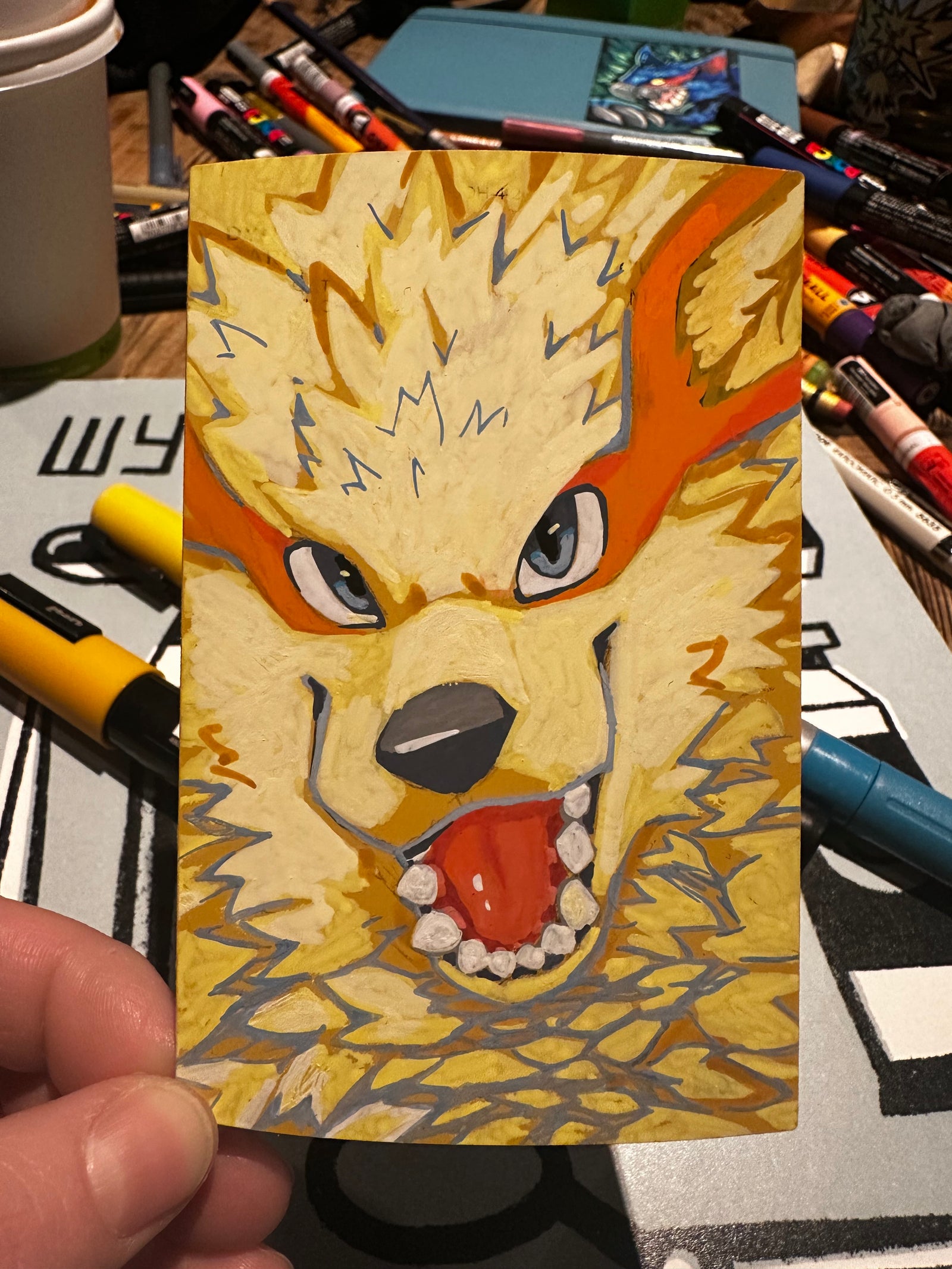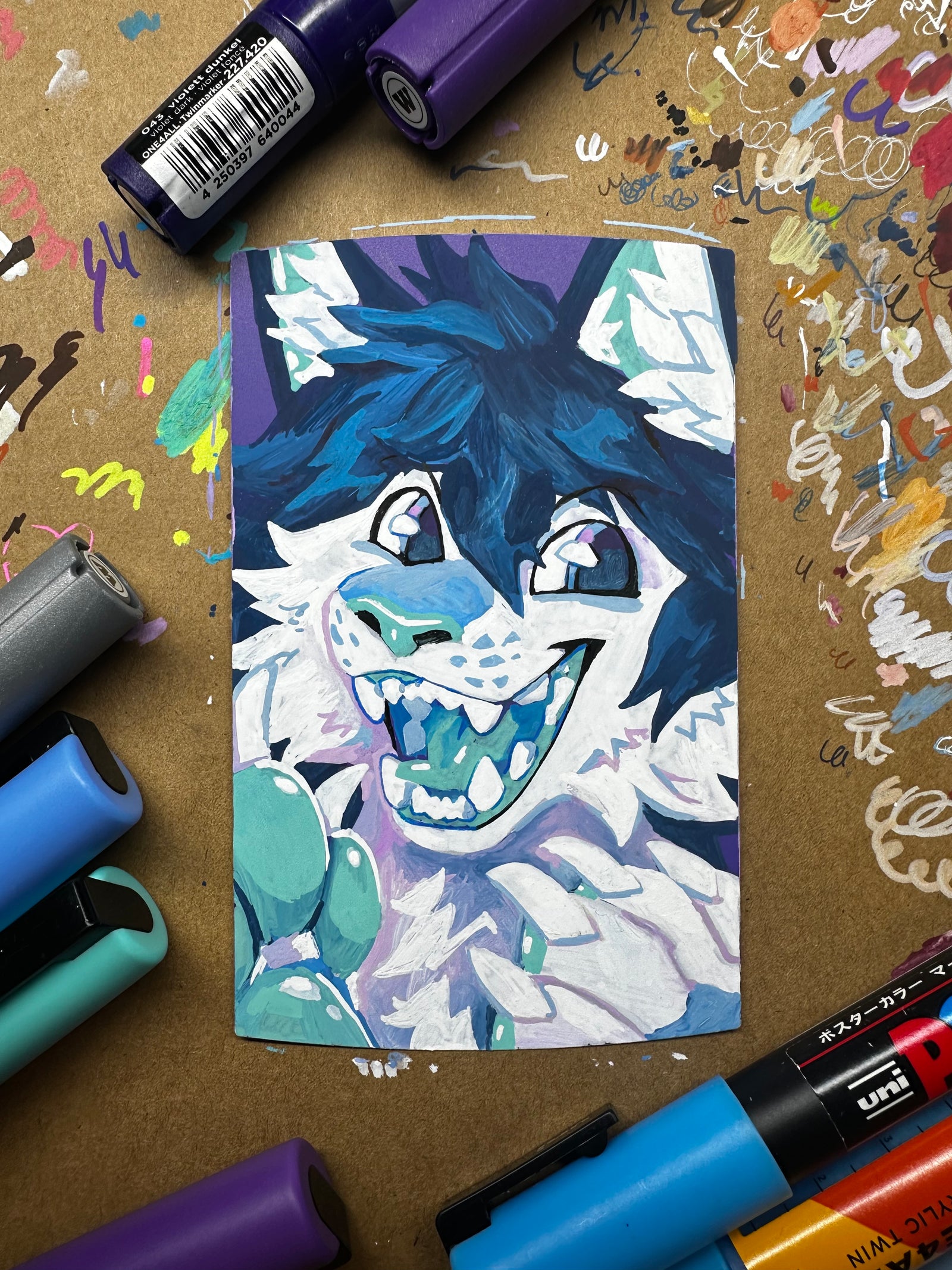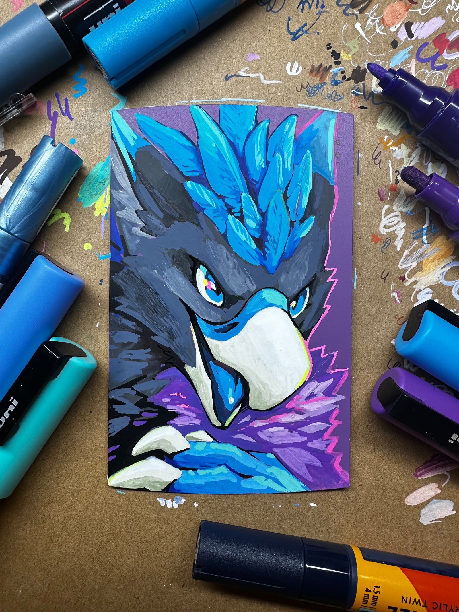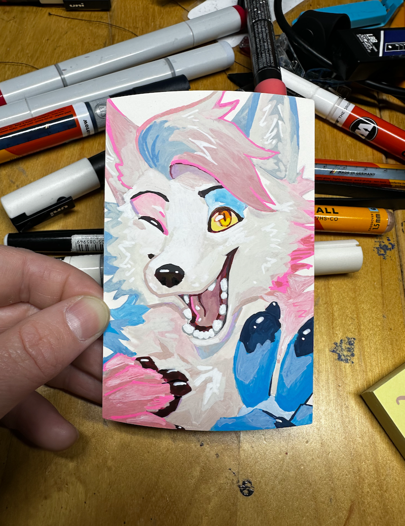 Paint markers have been my-go for traditional media, and what I offer for take-home commissions.